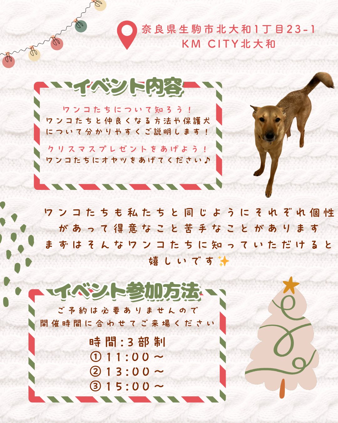 2025年12月21日(日)生駒譲渡センターにてクリスマスイベント「保護犬と仲良くなろう」を開催します!