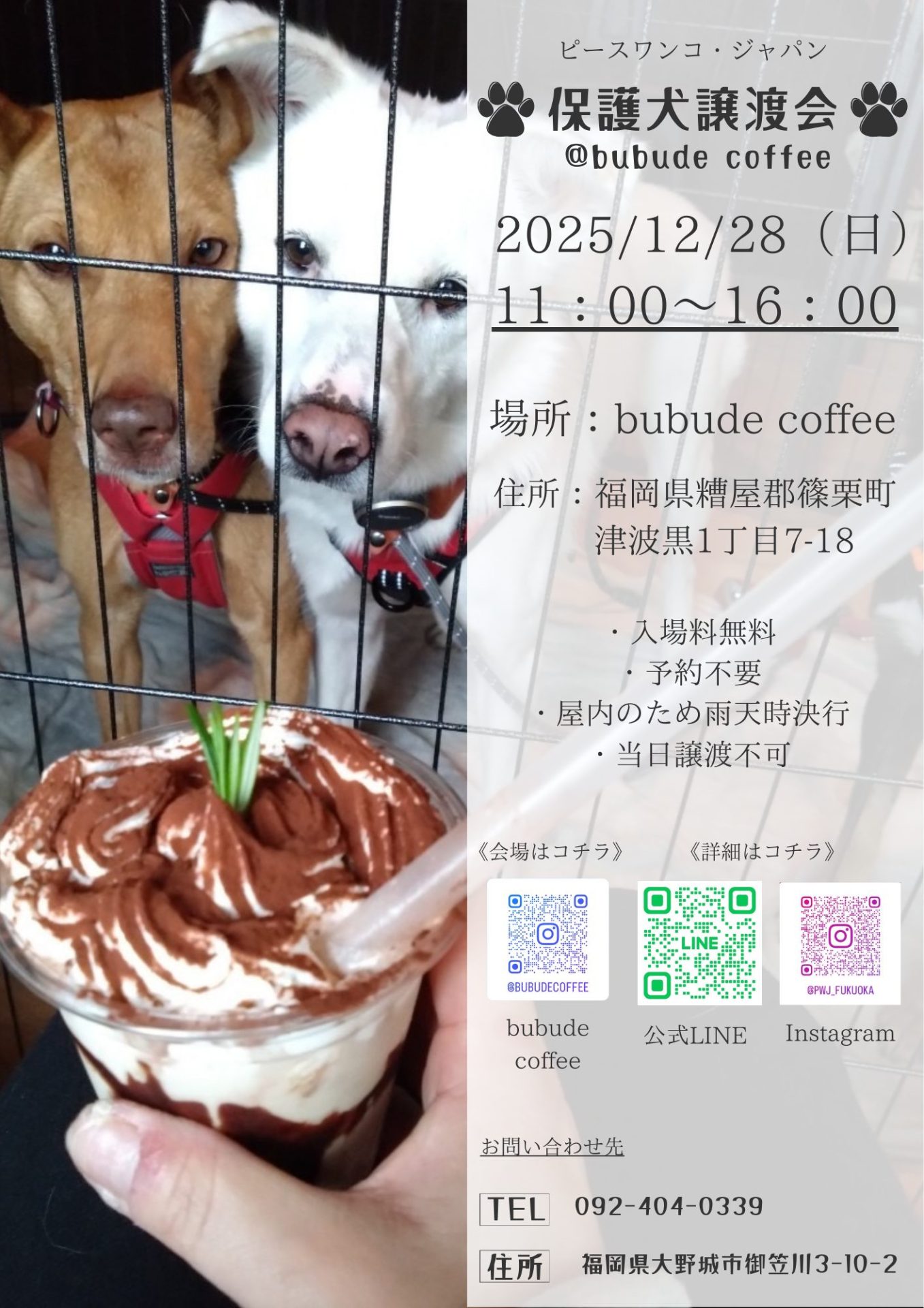 - 決まり次第、福岡譲渡センターのInstagramにてお知らせいたします!