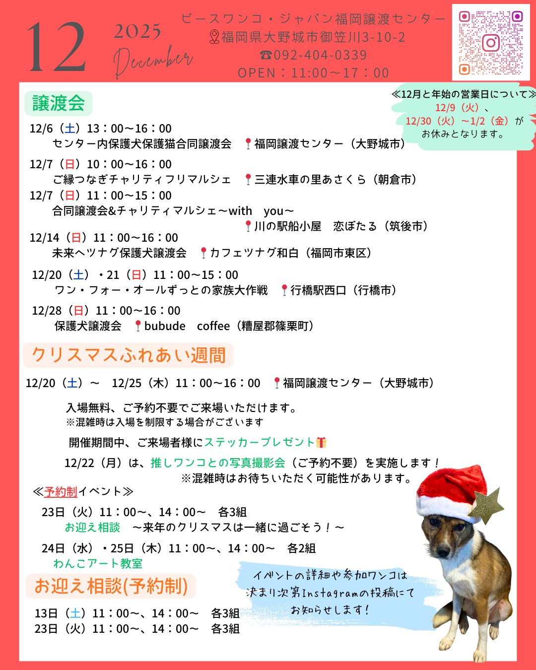 12月に福岡譲渡センターが開催、参加させていただくイベント一覧です!