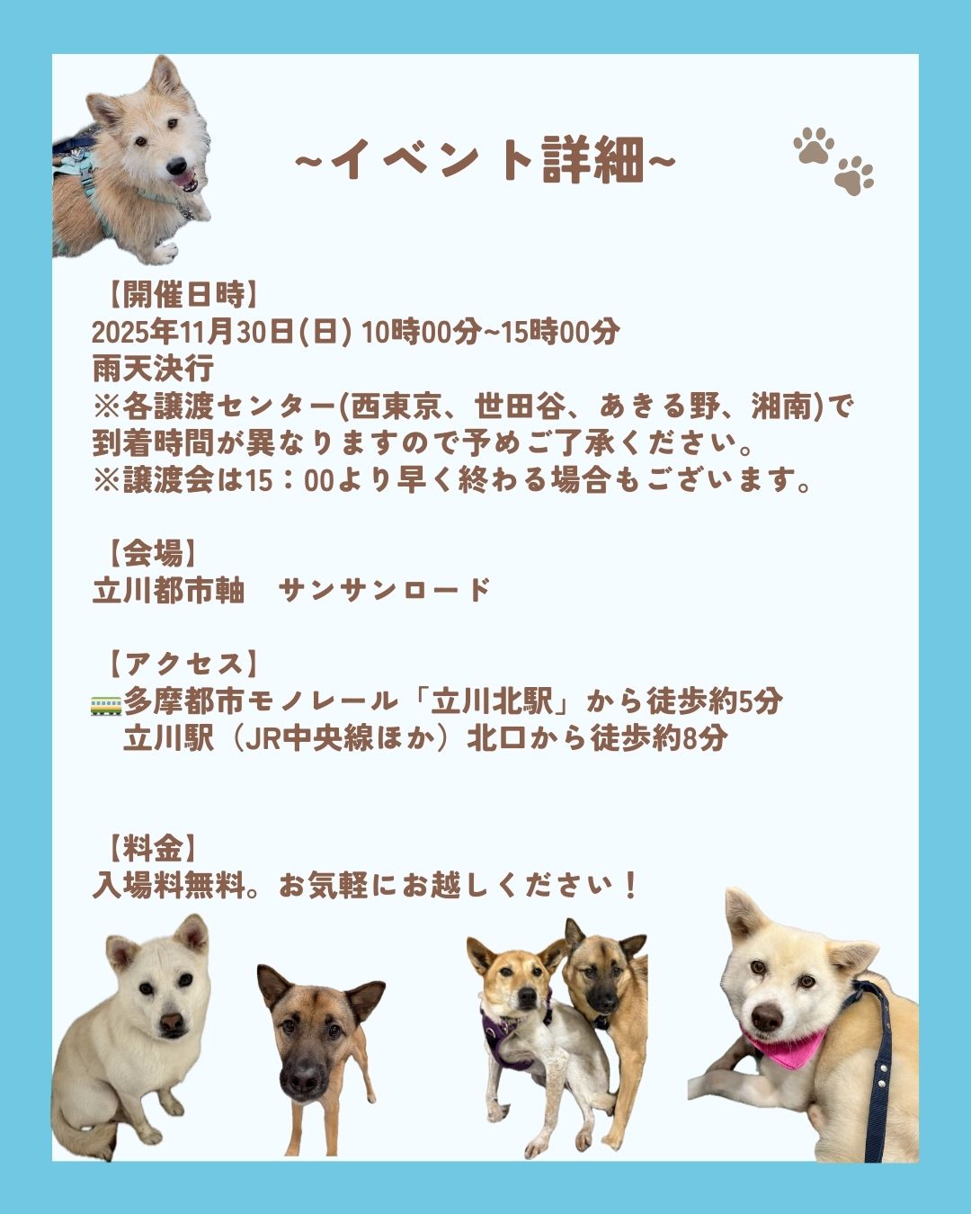 【ピースワンコの譲渡会】11/30(日)「保護犬譲渡会@たちかわあすなろフェスタ」開催(東京/立川市)