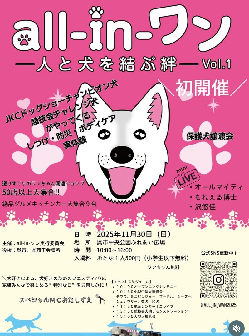 【ピースワンコの譲渡会】11/30(日)「all-in-ワン ~人と犬を結ぶ絆~」に参加(広島/呉市)