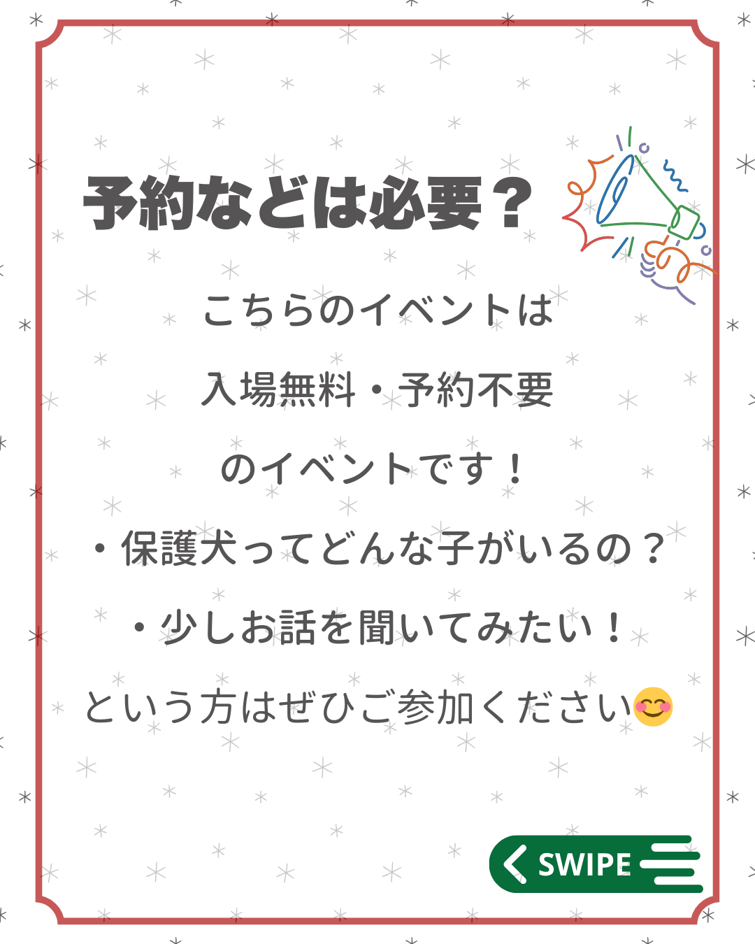 どなたでも参加いただけますので、この機会にぜひピースワンコ達に会いにいらしてください!