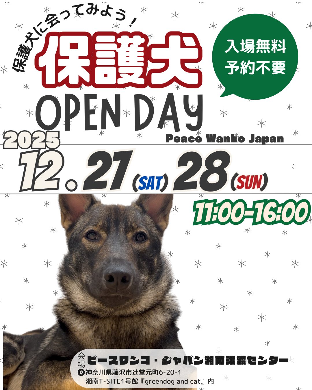 12/27(土)、12/28(日)の11:00~16:00、湘南譲渡センターで「保護犬OPEN DAY」を開催します。