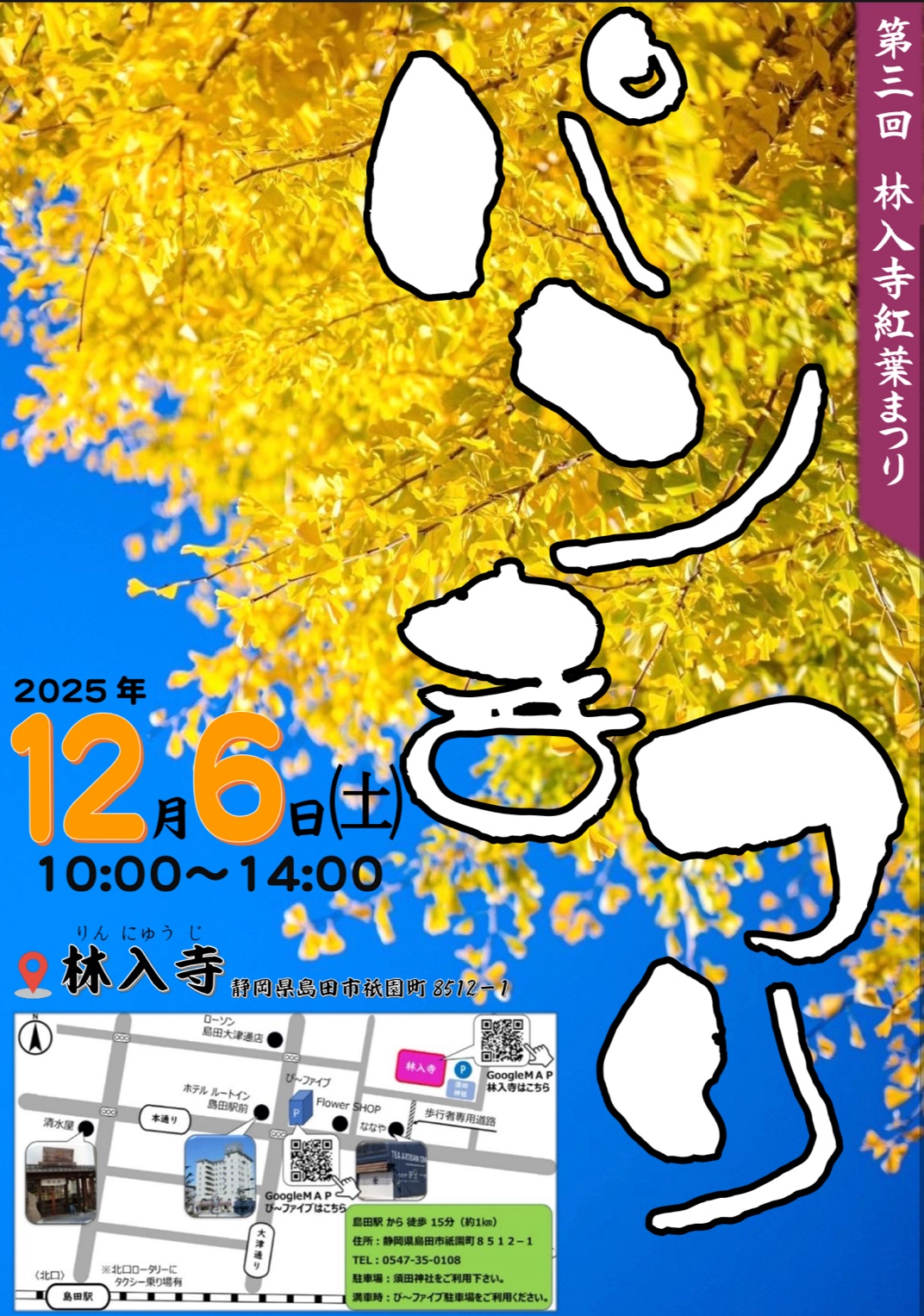 - 入場無料、予約不要 駐車場は須田神社をご利用ください。満車の際はぴ~ファイブ駐車場をご利用ください。島田駅から徒歩15分(約1㎞)