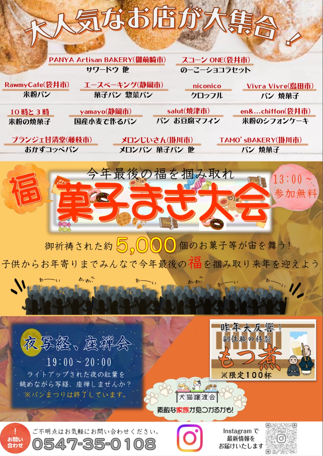 12/6(土)静岡県島田市にある林入寺の紅葉まつりにて「保護犬譲渡会」を開催します!パンまつりや菓子まき大会も開催されるようですので、大人から子供までとても楽しめるイベントとなっていますよ♪イベントも楽しみつつ、保護犬との素敵なご縁を探しませんか?保護犬と一緒に皆様のご来場を心よりお待ちしております。