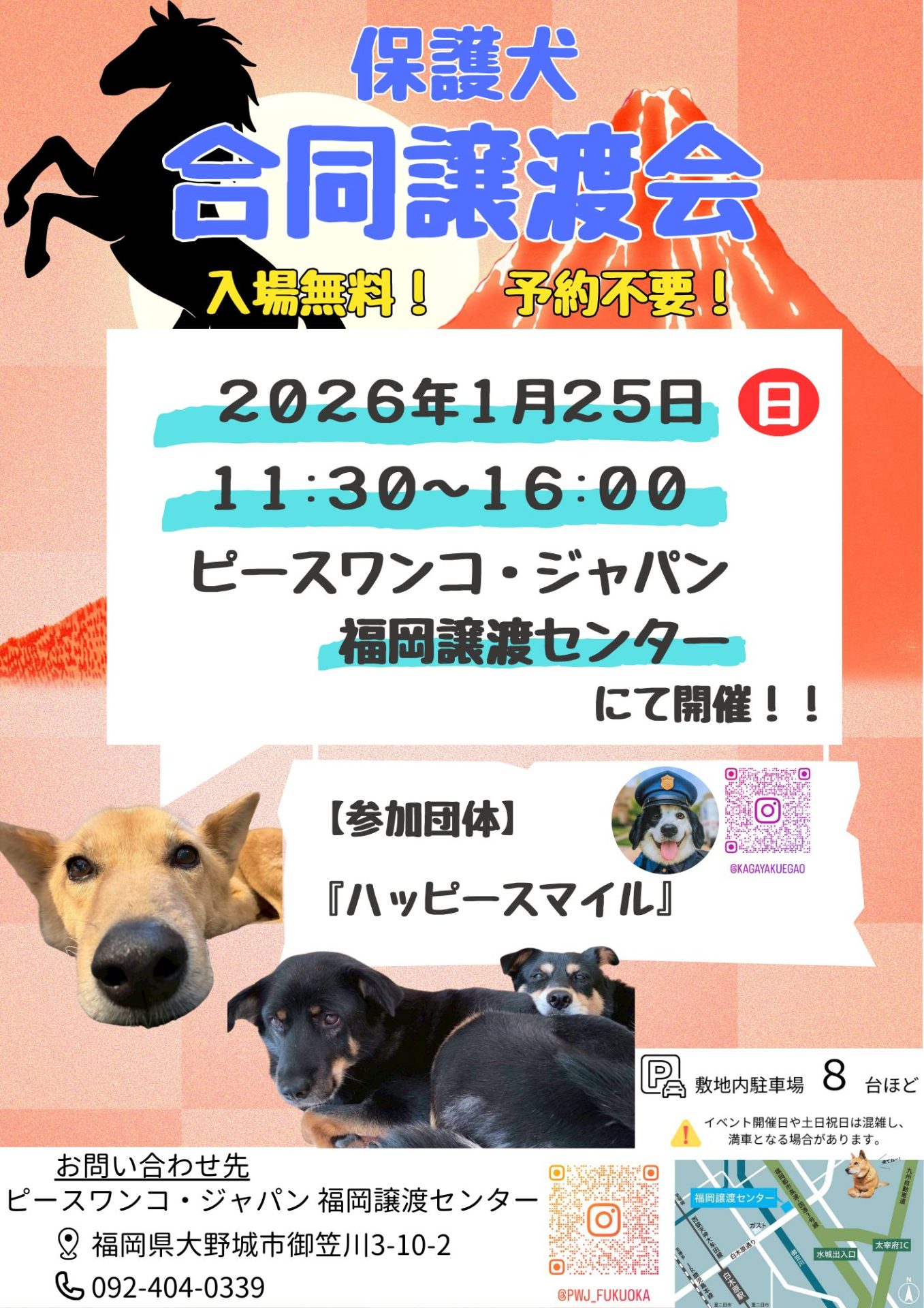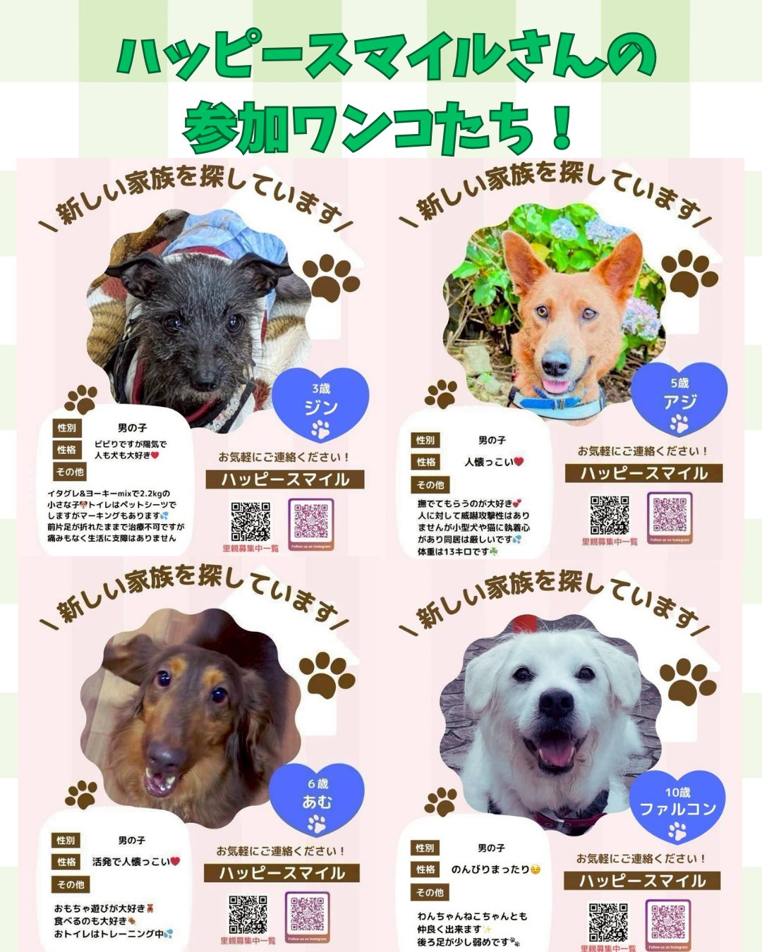 - ハッピースマイルさんの参加ワンコは画像、Instagramにてご確認ください。