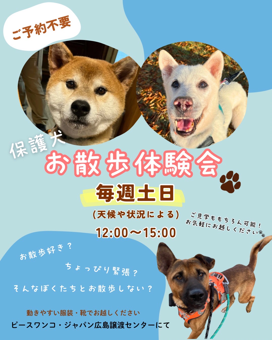 12月は毎週土日に、保護犬お散歩体験会を開催いたします。