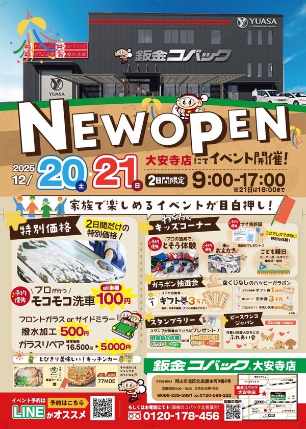12/20(土)、21(日) の2日間、鈑金コバック大安寺店さんでNEW OPEN イベントが開催されます。