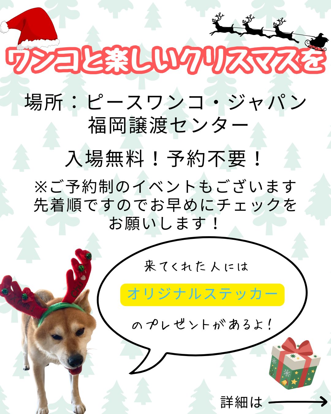 12/20(土)~25(木)に福岡譲渡センターにて「クリスマスふれあいweek」を開催します!