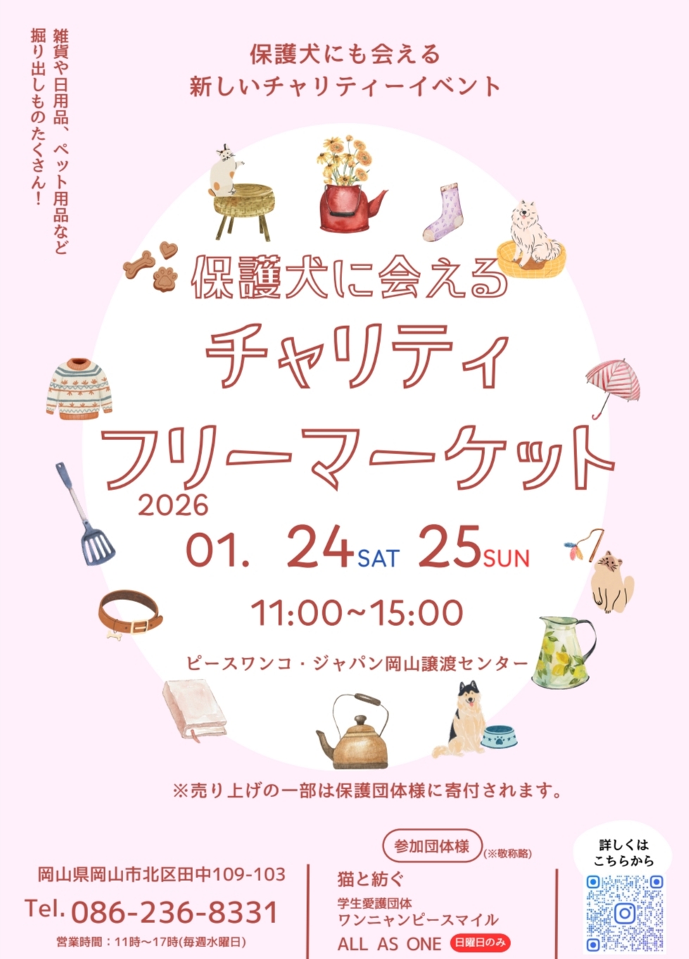 【ピースワンコのイベント】1/24(土)、25(日)「保護犬に会えるチャリティフリーマーケット」を開催(岡山譲渡センター)