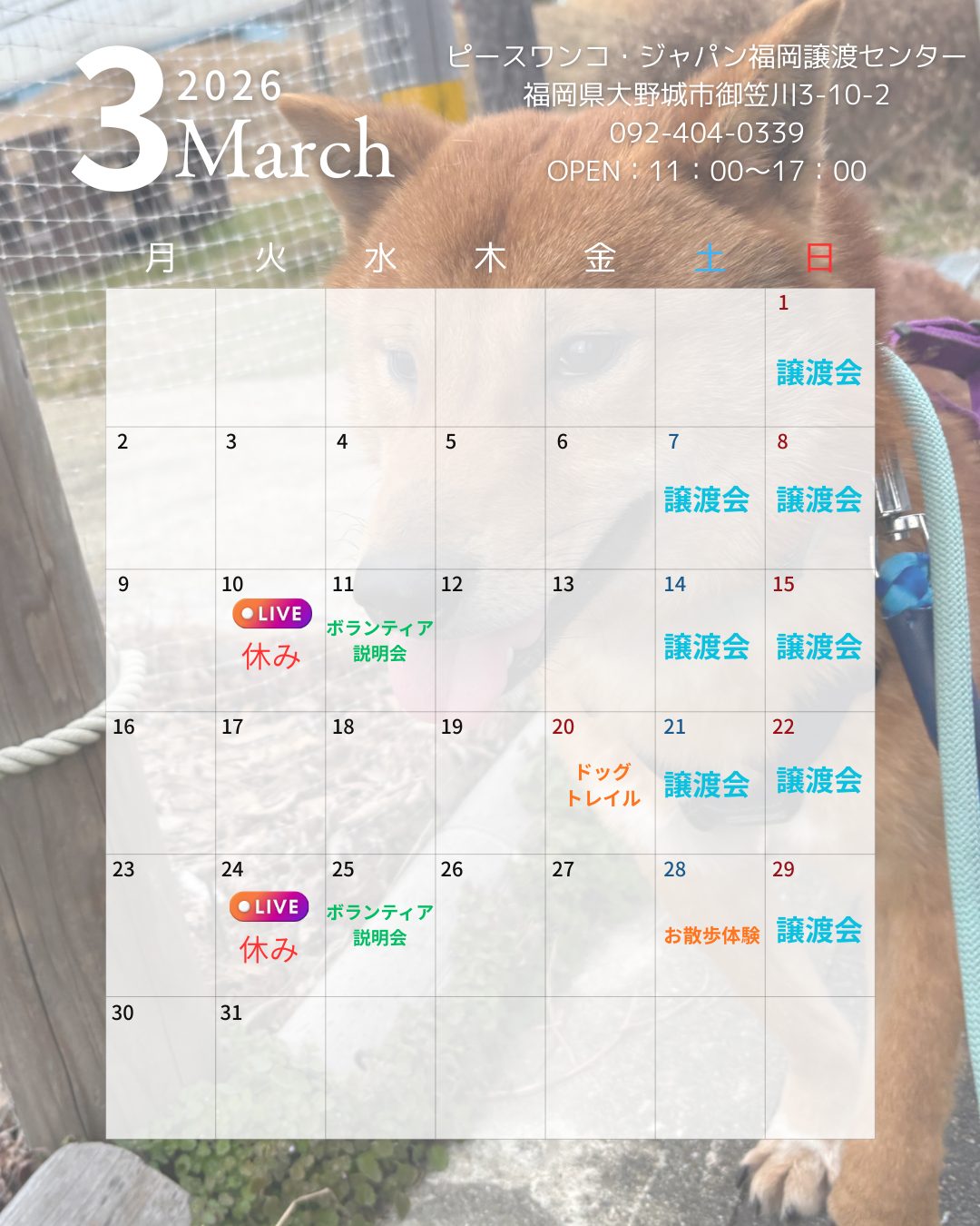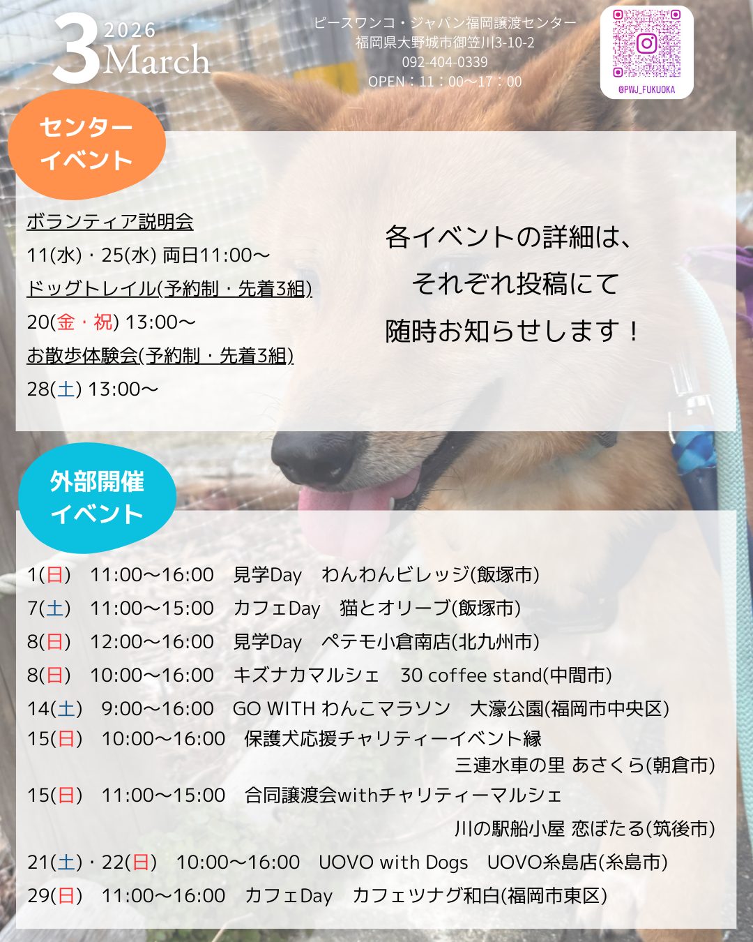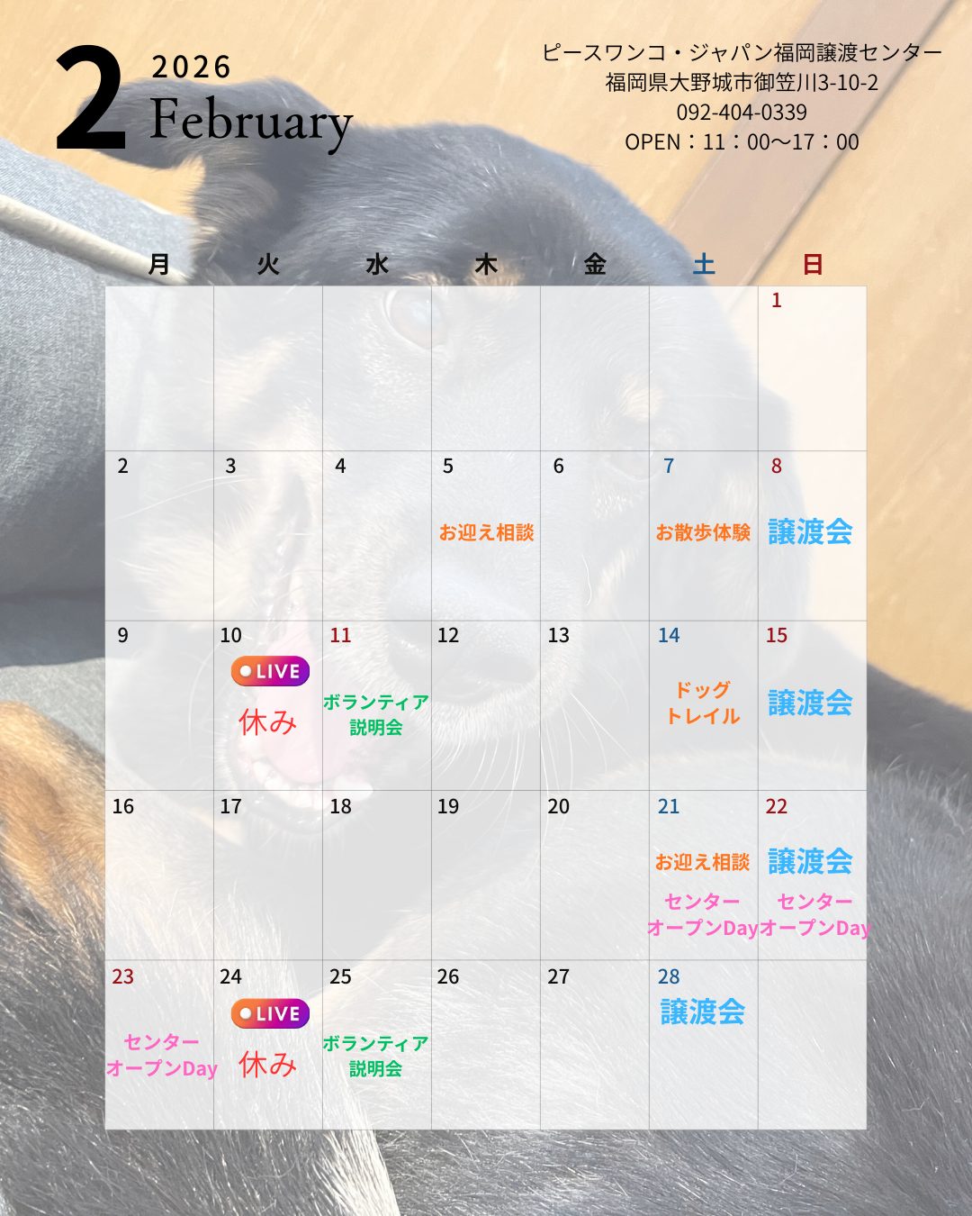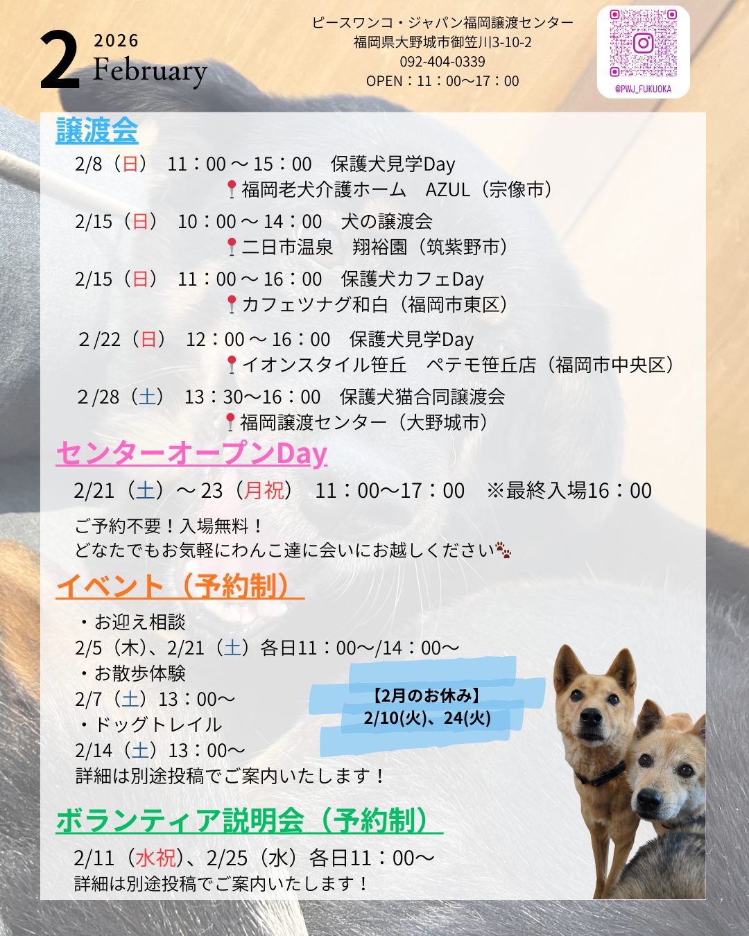 2月に福岡譲渡センターが開催、参加させていただくイベント一覧です!