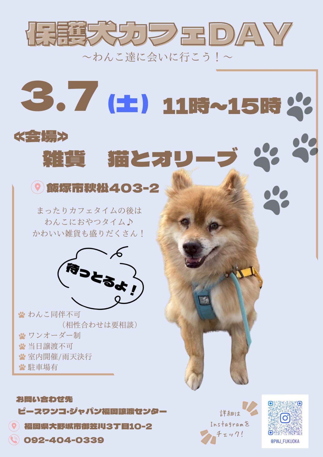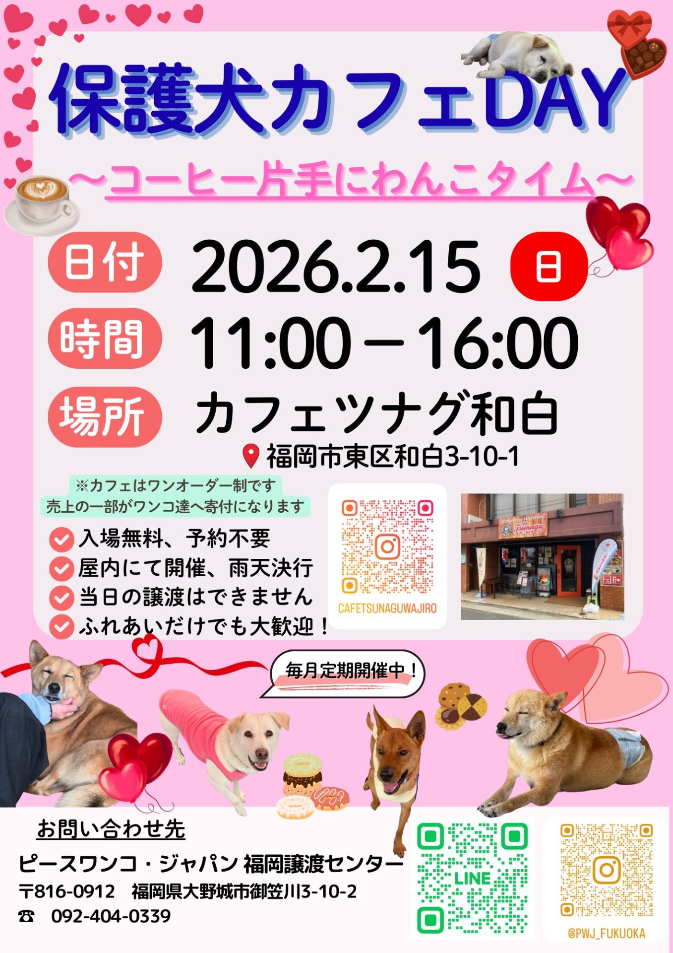 - 決まり次第、福岡譲渡センターのInstagramにてお知らせいたします!