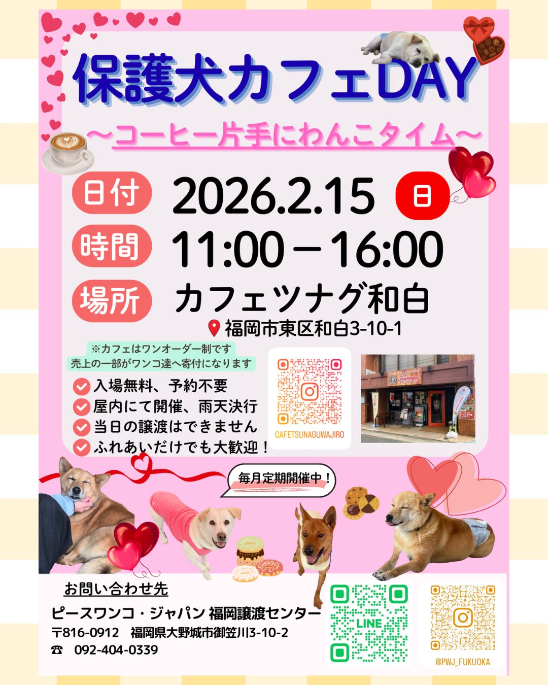 カフェツナグ和白(福岡市東区和白3-10-1)さんで定期開催している『保護犬カフェDay』ですが、