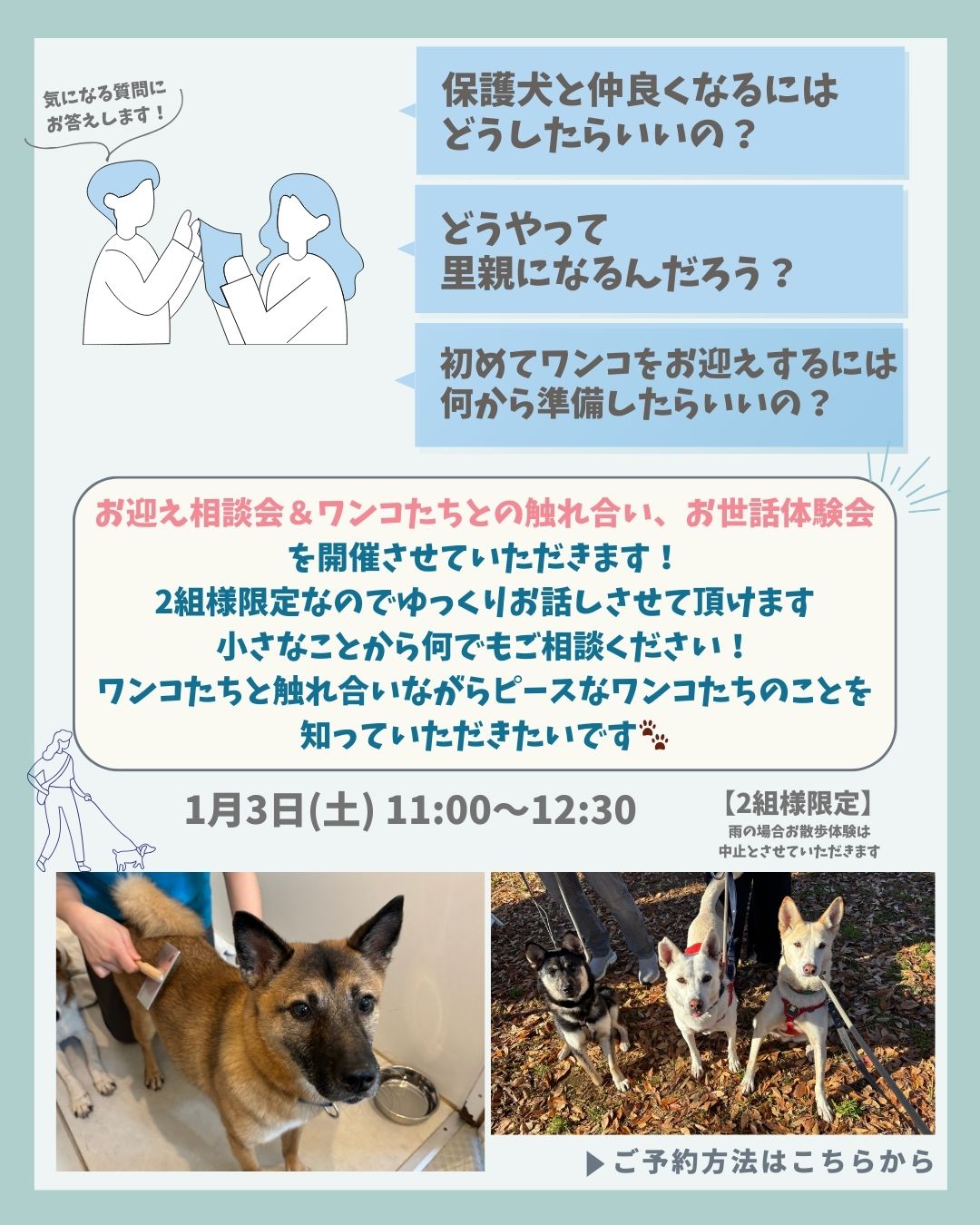 安心してお迎えいただけるための相談会とワンコたちとの触れ合い方やお世話体験もしていただける特別なイベントとなっています🐕💓