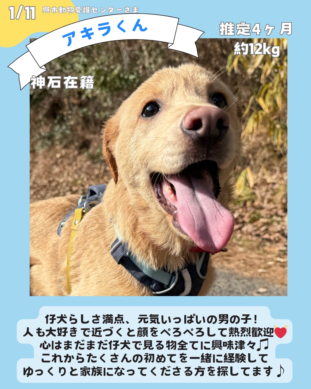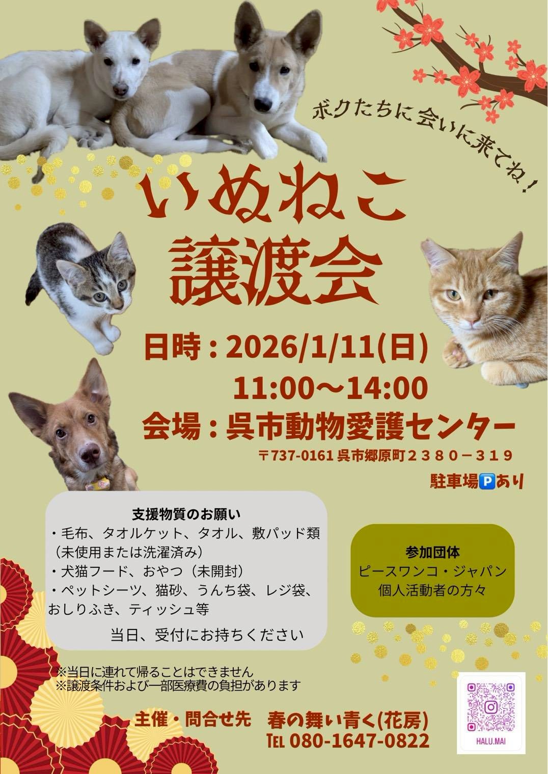 呉市動物愛護センターにて開催される春の舞い青く様主催の「いぬねこ譲渡会」に、