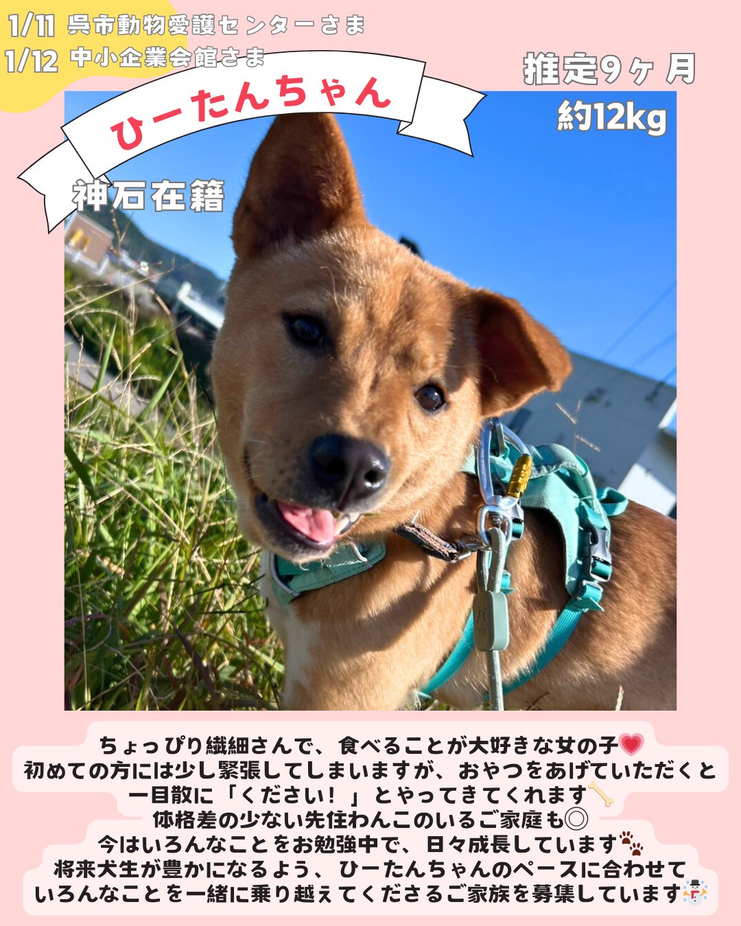ピースワンコは神石高原シェルターと広島譲渡センターから6-8頭が参加させていただきます。