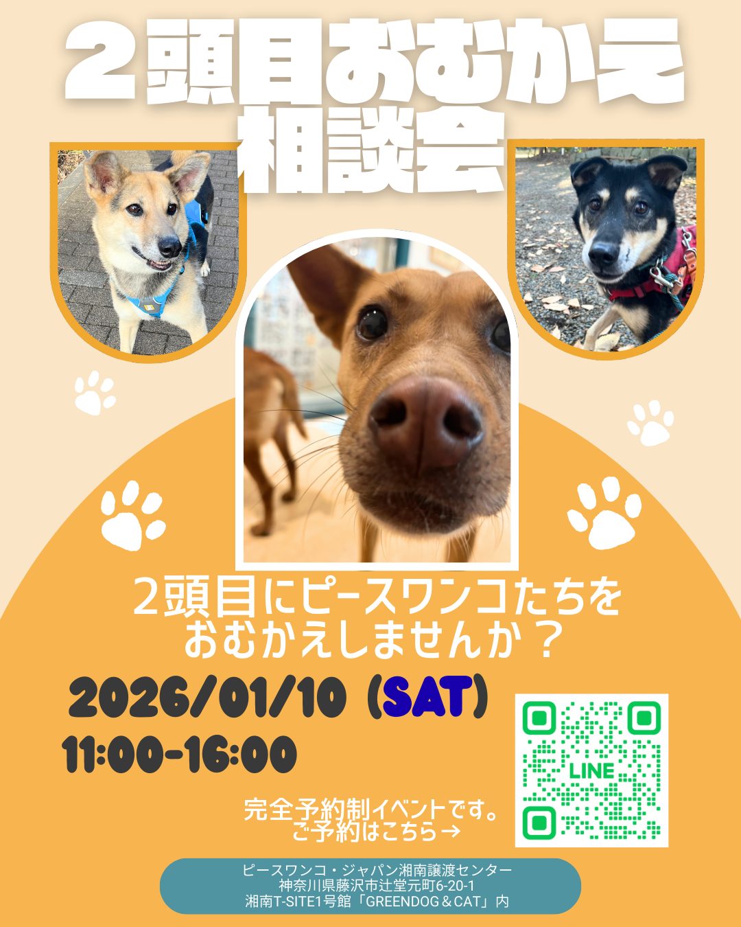 【ピースワンコのイベント】1/10(土)ピースワンコ2頭目おむかえ相談会※予約制(湘南譲渡センター)