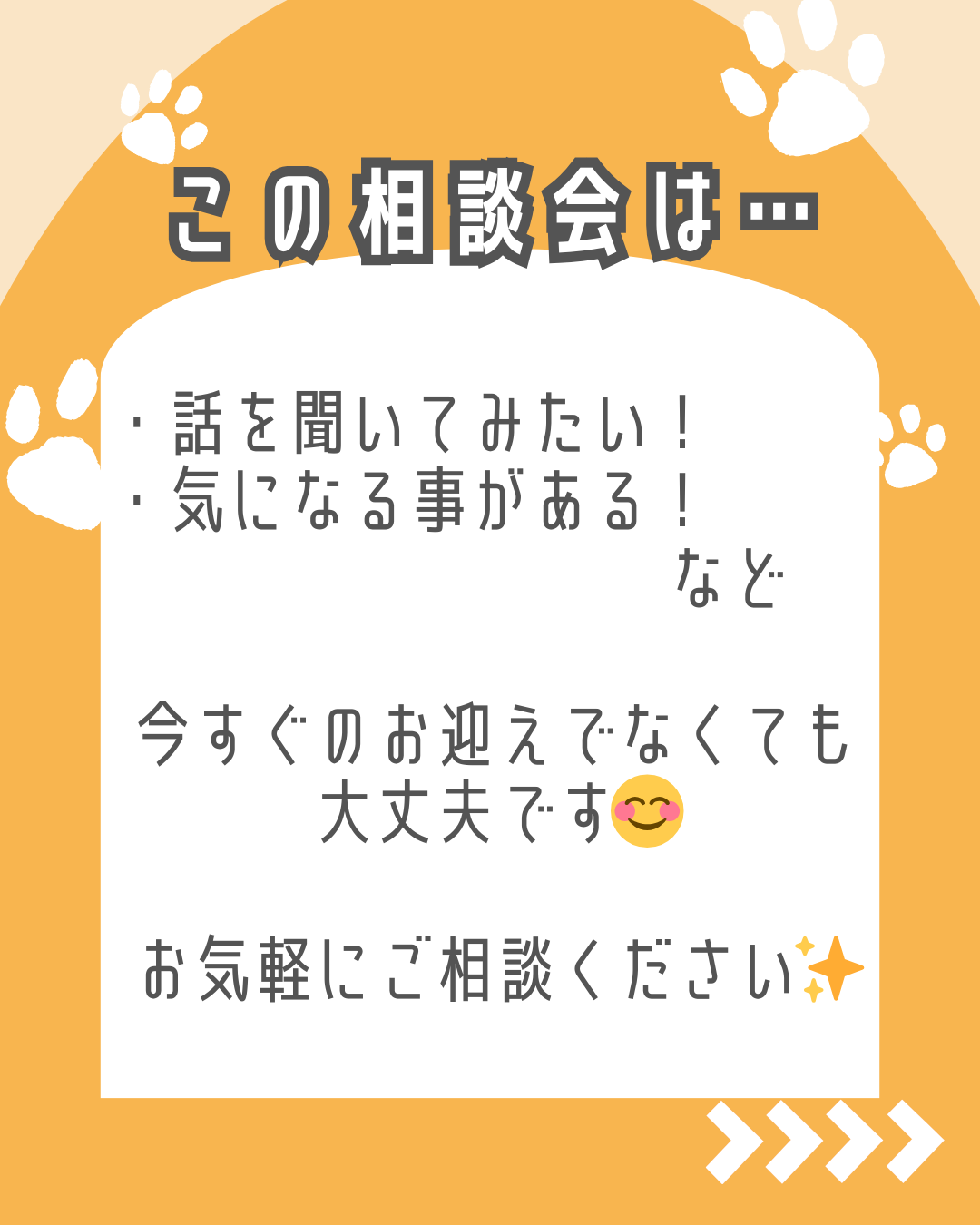 話を聞いてみたい、気になることがあるなど今すぐのお迎えでなくても大丈夫です!