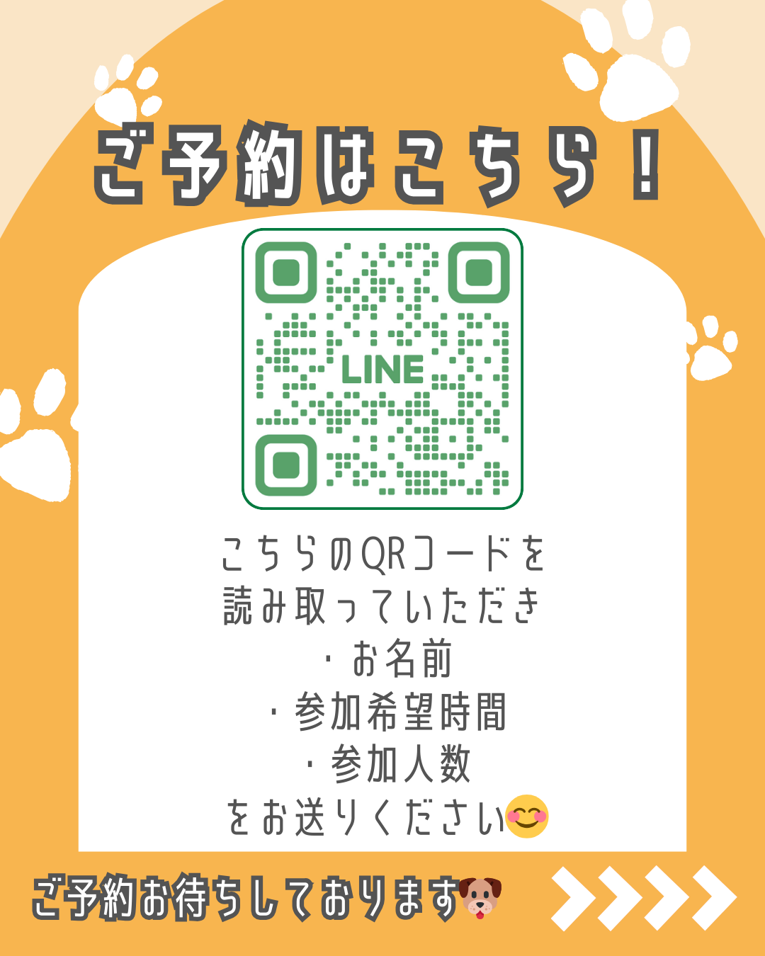 湘南譲渡センターの公式LINEアカウントを追加していただき、・お名前 ・参加人数ご希望時間をお送りください。