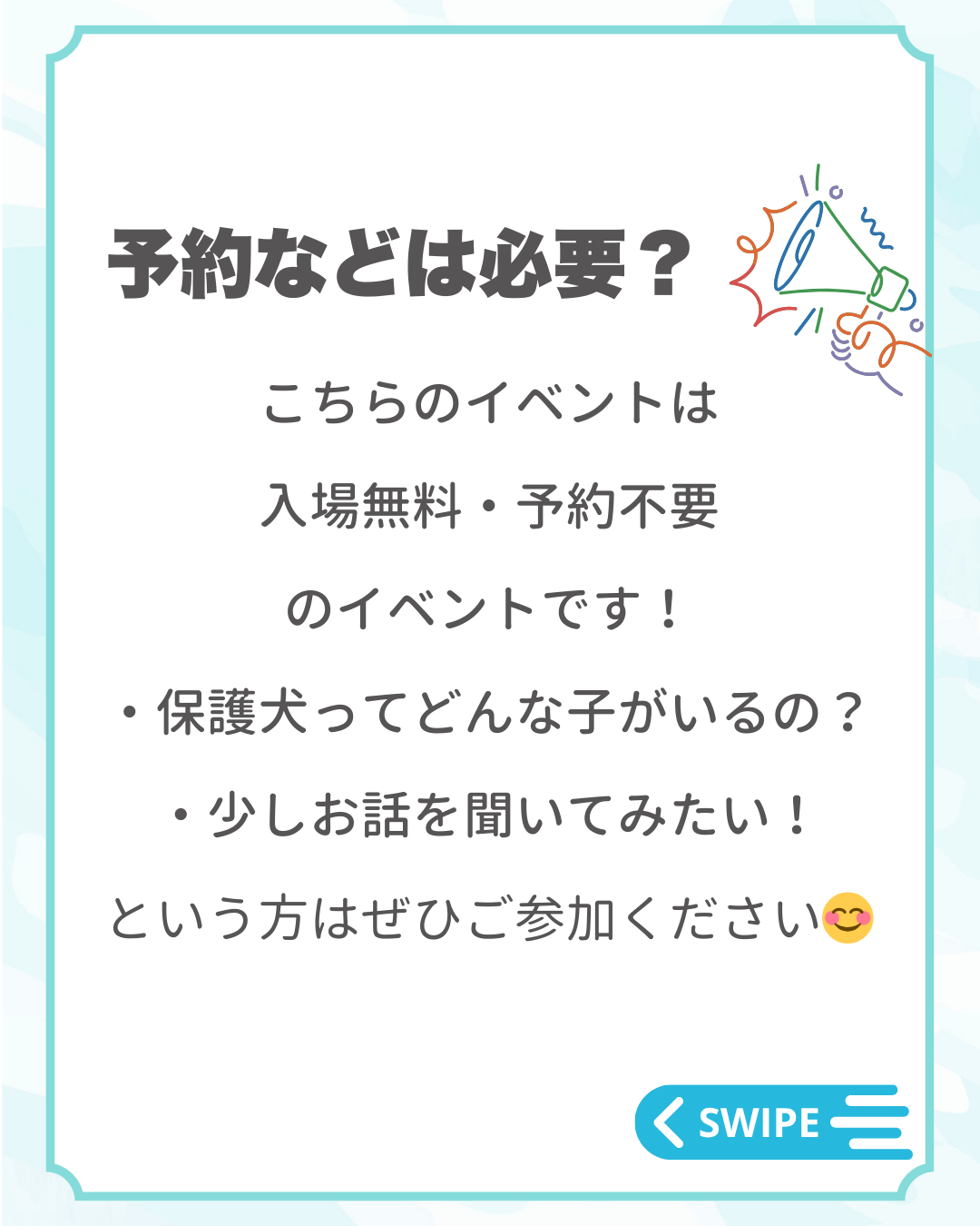 どなたでも参加いただけますので、この機会にぜひピースワンコ達に会いにいらしてください!