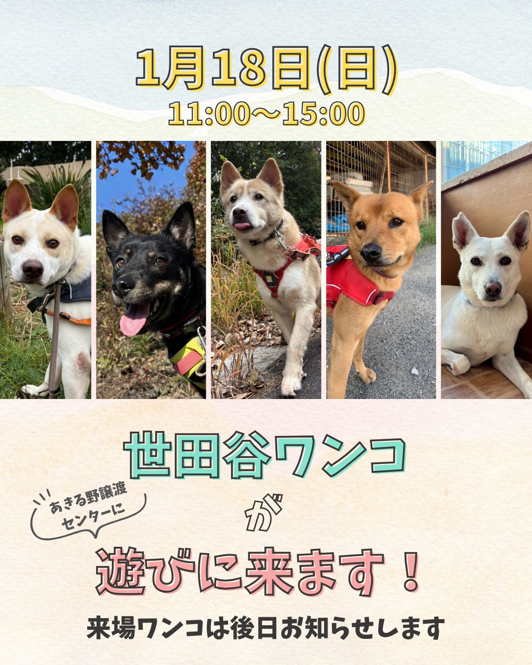 1月18日(日)世田谷譲渡センターのワンコがあきる野に遊びにきてくれます!