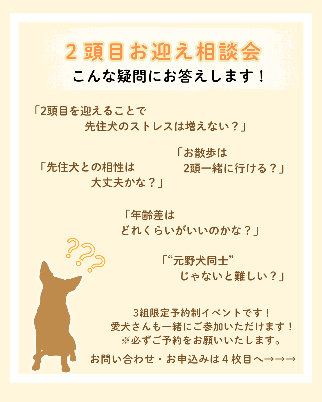 2頭目をお考えの方や、まずはお話しを聞いてみたい方など、ぜひお気軽にご参加ください。