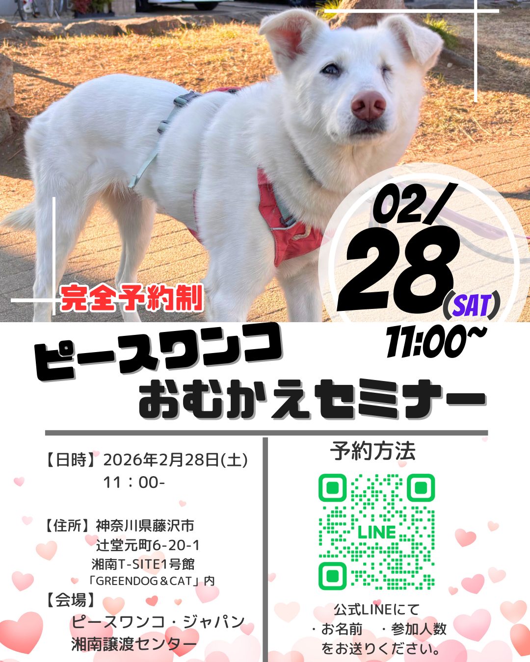 【ピースワンコのイベント】2/28(土)ピースワンコおむかえセミナー ※予約制(湘南譲渡センター)