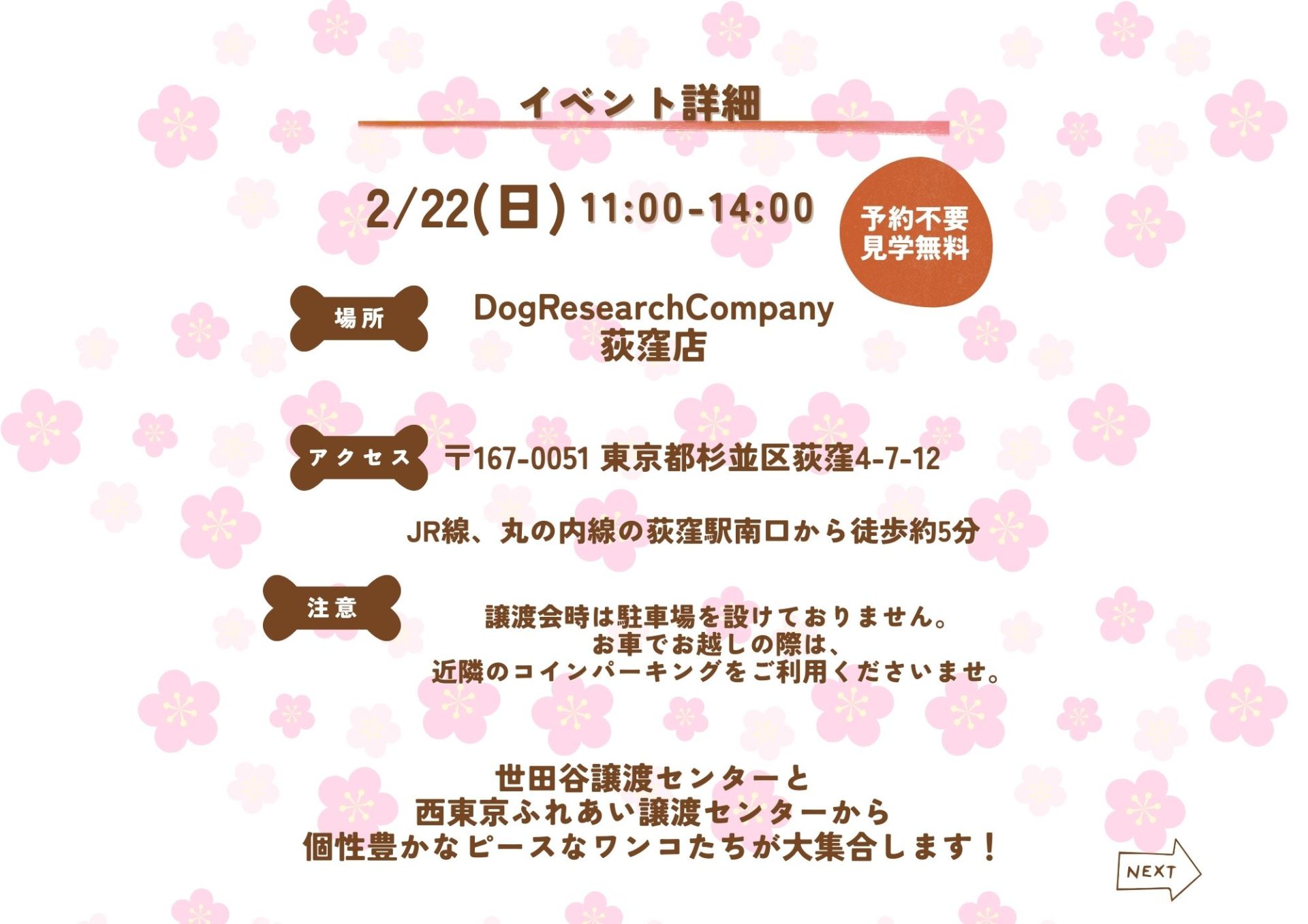 東京都杉並区にありますDogResearchCompany荻窪店様の店内をお借りして、保護犬譲渡会を開催させていただくことになりました!