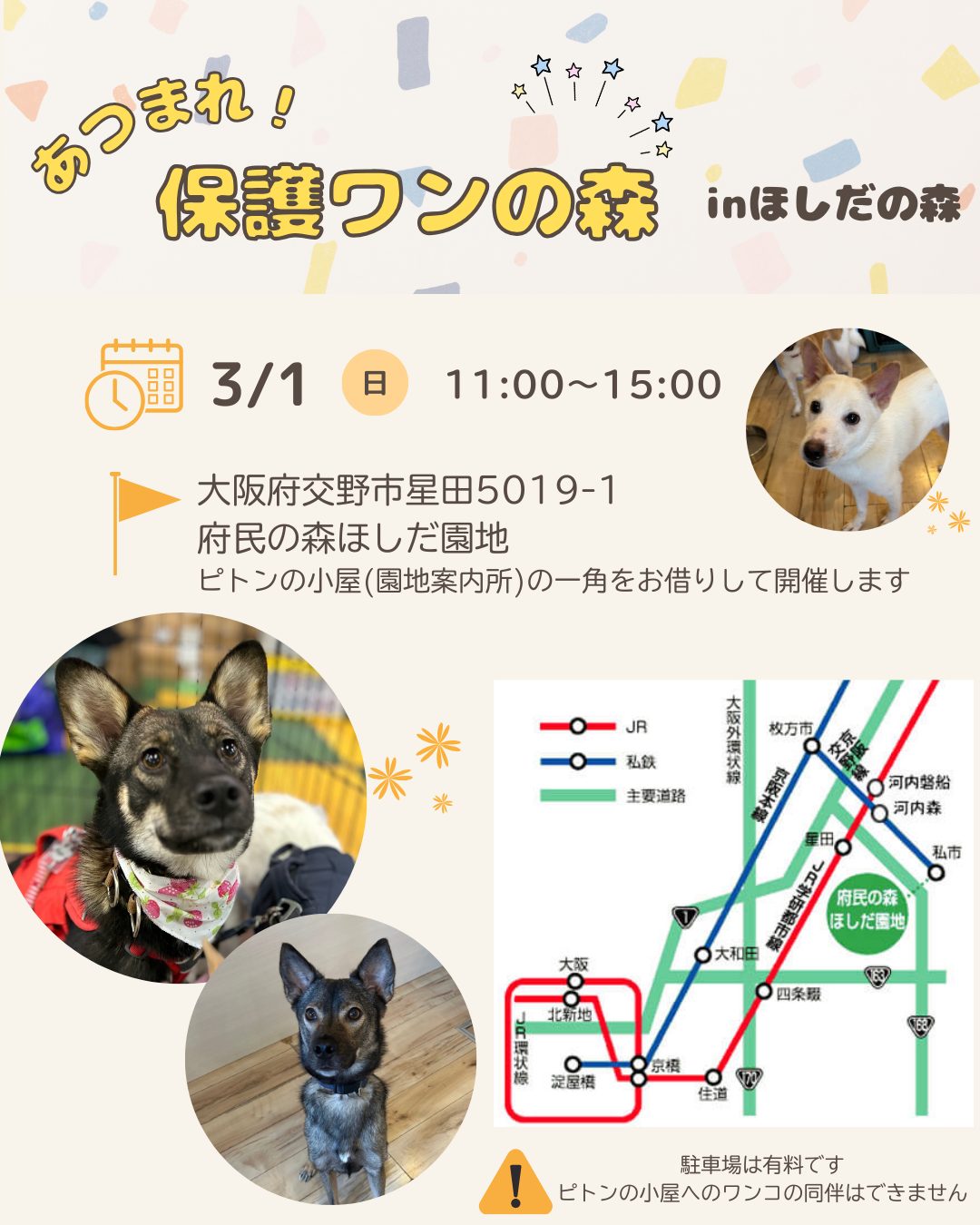 【ピースワンコの譲渡会】3/1(日)「あつまれ!保護わんの森」開催(大阪/交野市)