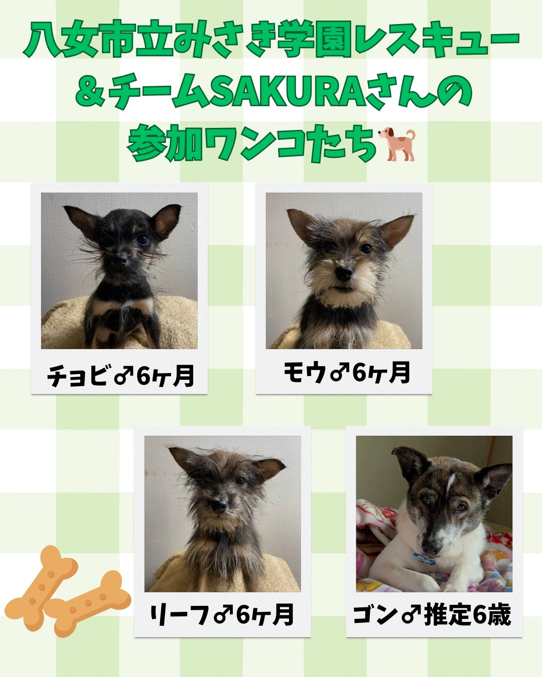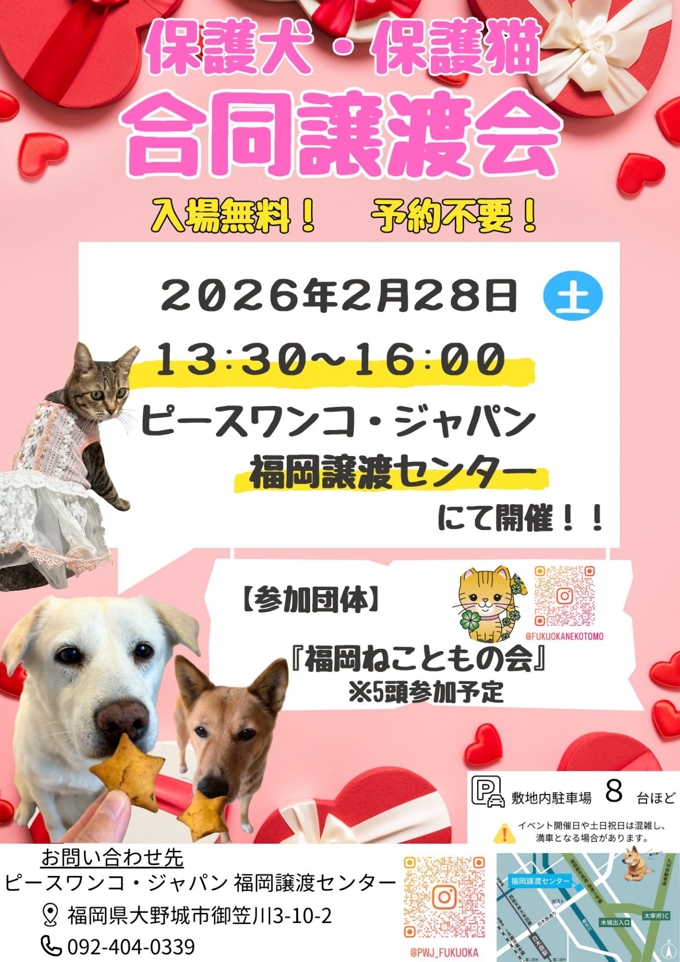 今回は参加団体「福岡ねこともの会」さん、「八女市立みさき学園レスキュー&チームSAKURA」さんのわんにゃん達がやって来てくれます!