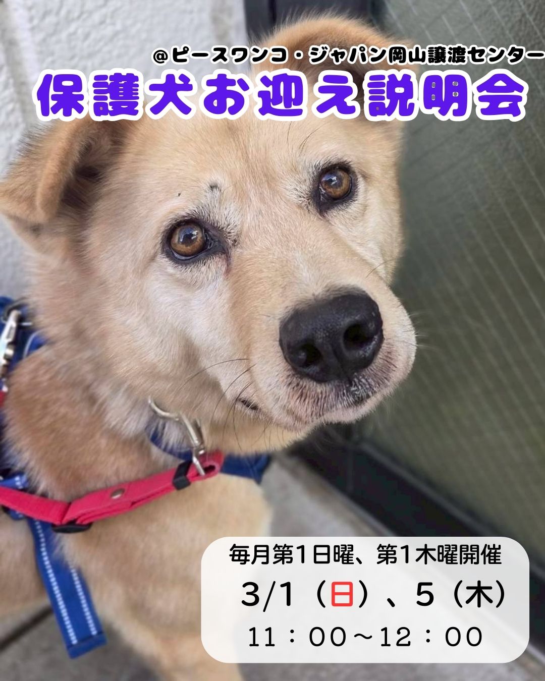 つきましては、下記日程で「保護犬お迎え説明会」を開催いたします。