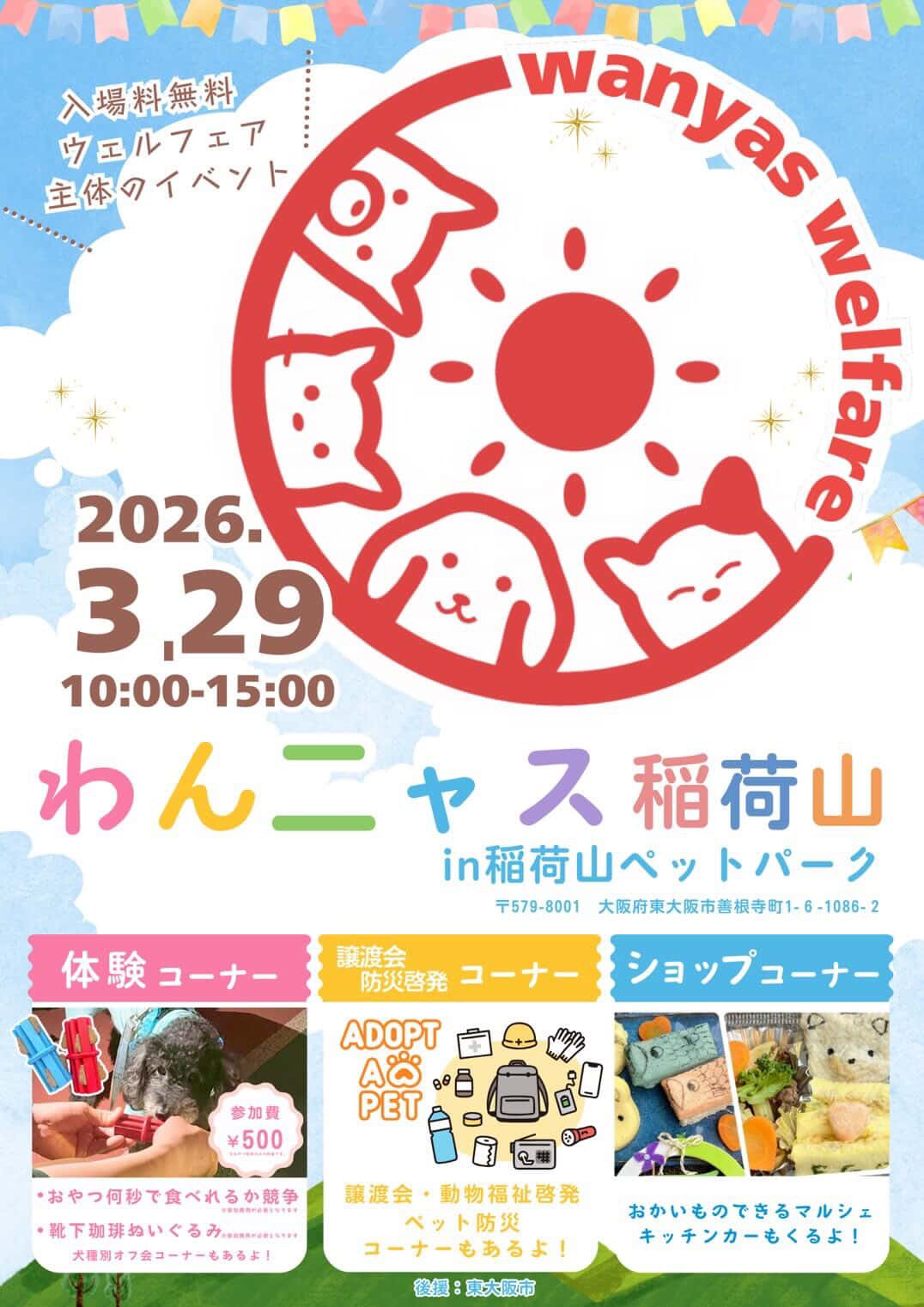 【ピースワンコの譲渡会】3/29(日)「わんニャス稲荷山in稲荷山ペットパーク」参加(大阪/東大阪市)