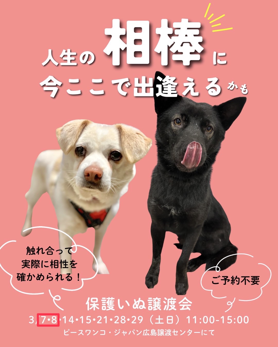 3月7日(土)、8日(日)に、広島譲渡センターにて譲渡会を開催します。
