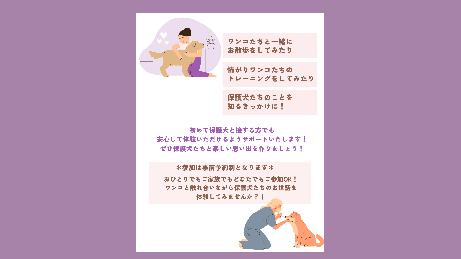ワンコたちとも触れ合っていただきながら、一緒に保護犬たちのことを知っていきませんか?