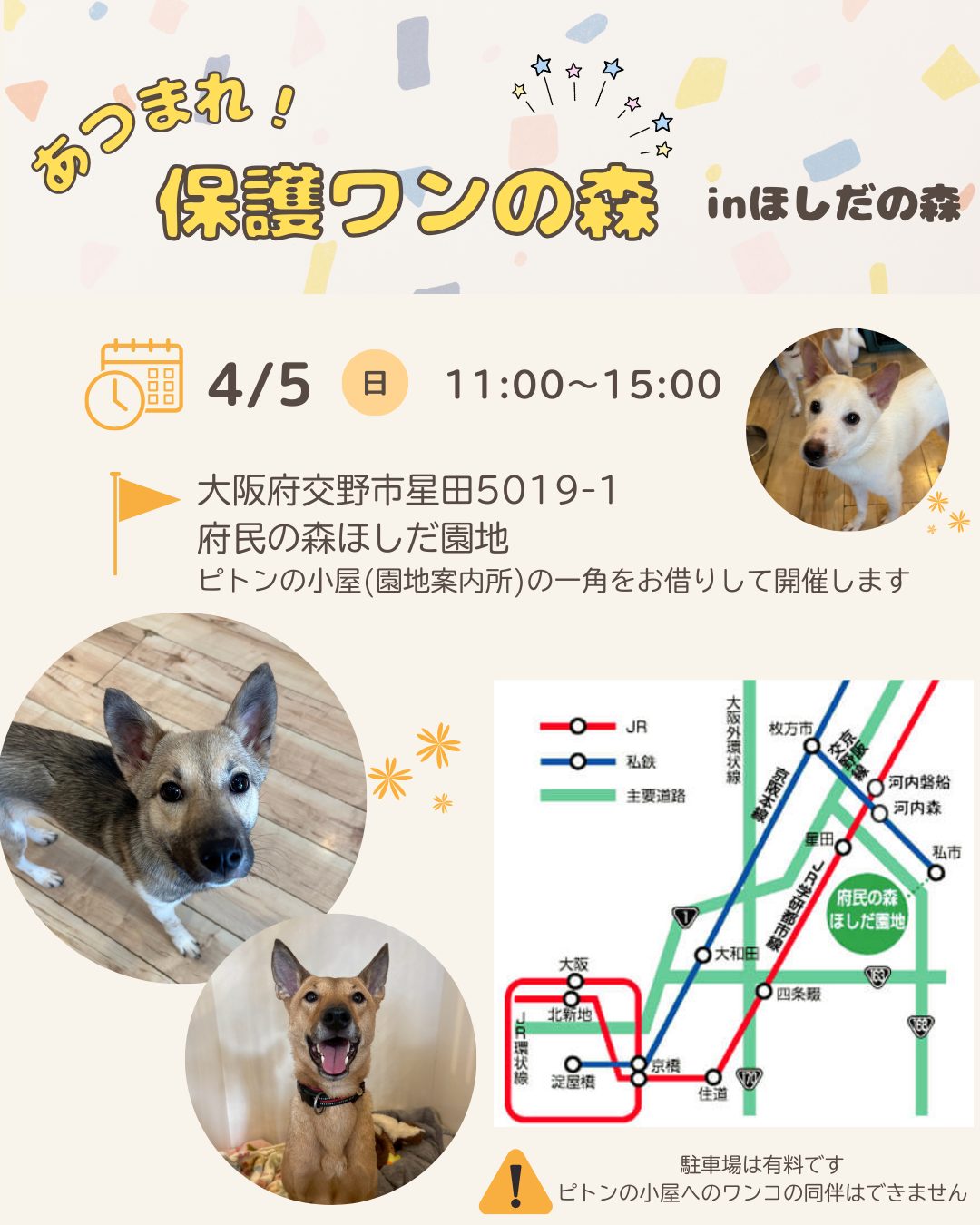 【ピースワンコの譲渡会】4/5(日)「あつまれ!保護わんの森」開催(大阪/交野市)