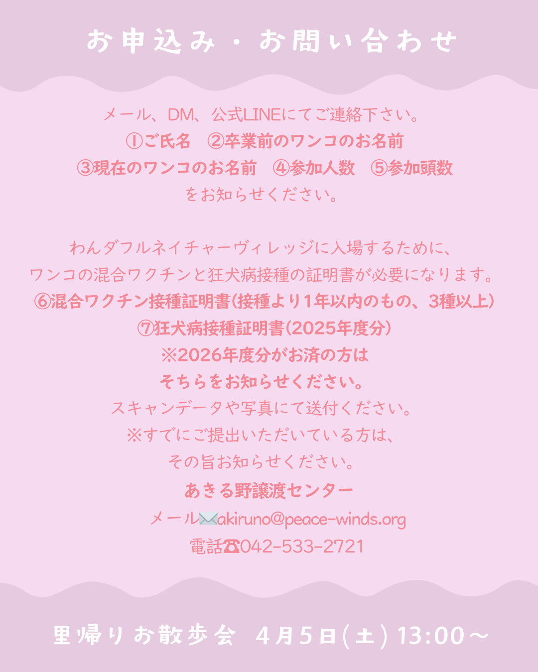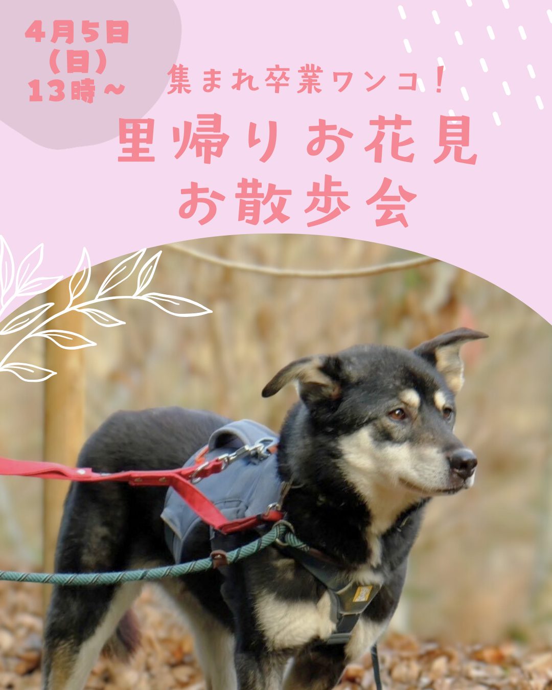 【ピースワンコのイベント】4/5(日)「卒業ワンコ里帰りお散歩会」を開催!(あきる野譲渡センター)