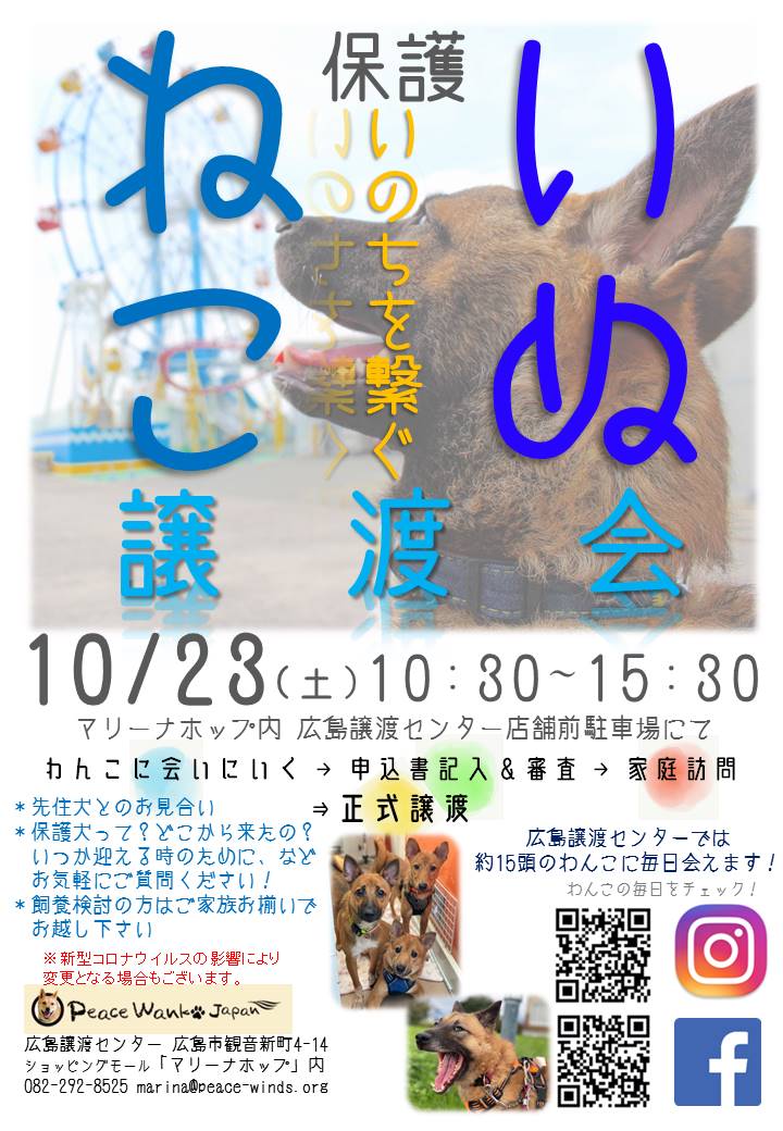 【ピースワンコの譲渡会】10/23(日)「会える!いぬねこ譲渡会」開催(広島譲渡センター)